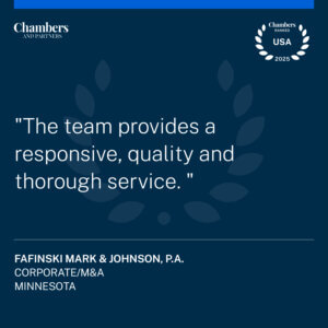 Our attorneys can help clients work through successful ETA deals across a diverse range of industries, including manufacturing, consulting and professional services, technology, healthcare and medical devices, real estate, renewable energy, sports & entertainment, education, aviation, and many more. We work on ETA deals all along the size spectrum, ranging from SBA to lower middle market. Similar to M&A and other types of commercial transactions, ETA and self-funded search deals can be complicated. With the strength of our commercial and M&A practice groups behind it, FMJ’s ETA team provides the same strong negotiations, creative solutions, compelling value, and responsive service, that lead to the to the positive experiences and outcomes our clients have come to expect from Fafinski Mark & Johnson.